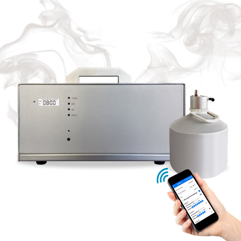 Our scent diffuser utilizes cold two-fluid atomization technology. High-speed air collision transforms aroma oil into nanoscale mist, which is then distributed through your space via the HVAC system or direct diffusion.